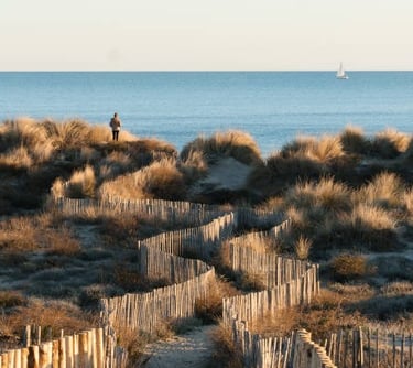 Des limites de la Camargue et au delà de la frontière Espagnol, d'immenses plages de sable fin pour la bronzette, mais aussi les activités nautiques et sportives, à quelques minutes.